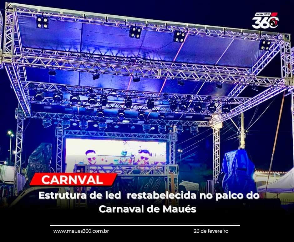A estrutura de led do palco do carnaval foi recolocada e está em perfeito funcionamento no palco onde será realizado o carnaval popular de Maués.